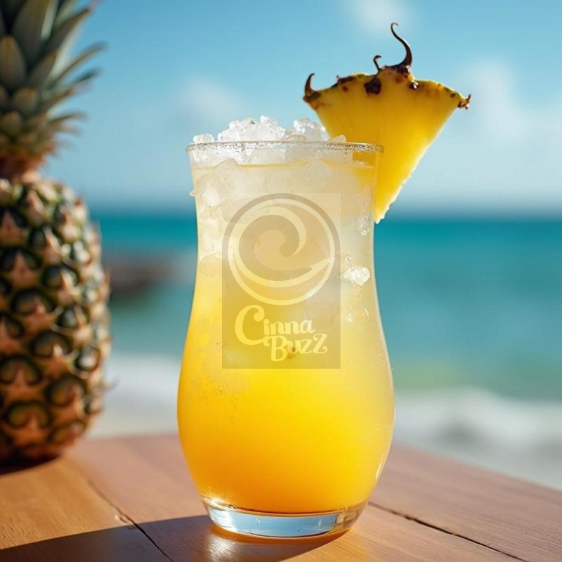Fill a glass with ice. Pour in Malibu rum, pineapple juice and top with Cinna Buzz.